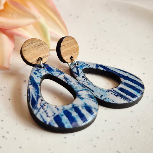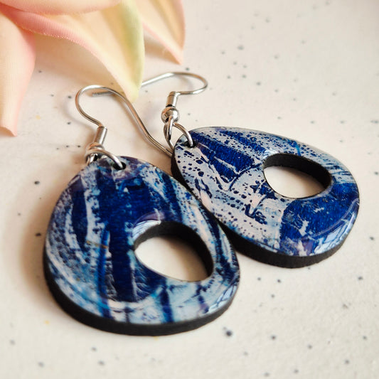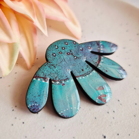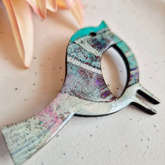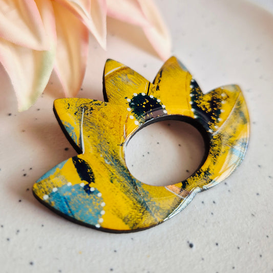 Created from my own original gel plate prints and transformed into gorgeous jewellery, these earrings and brooches are all one-of-a-kind and unique.