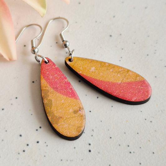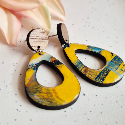 Gel Plate Teardrop Stud Drops (Yellow Ochre)