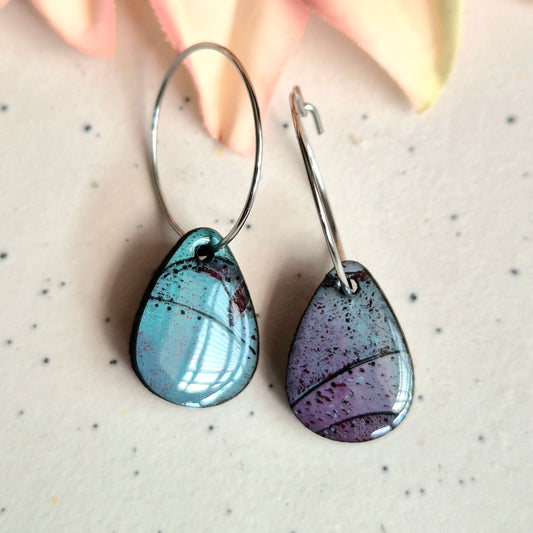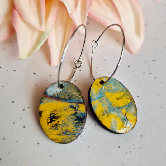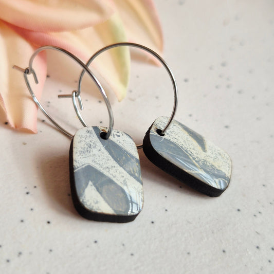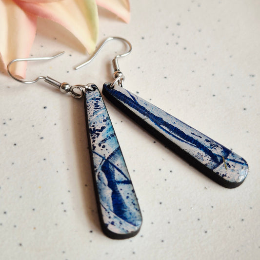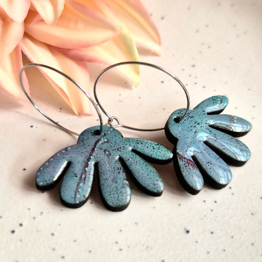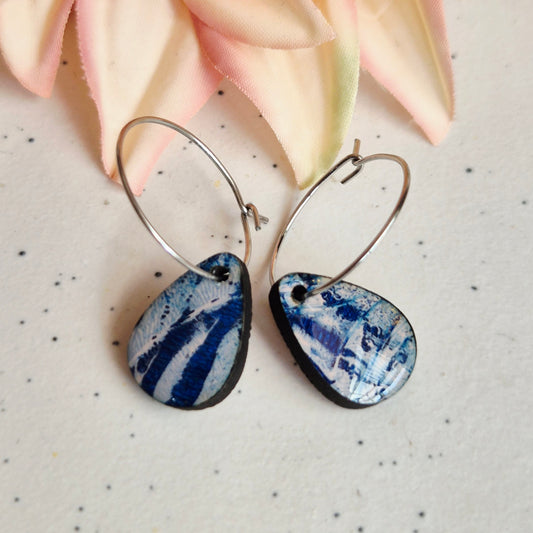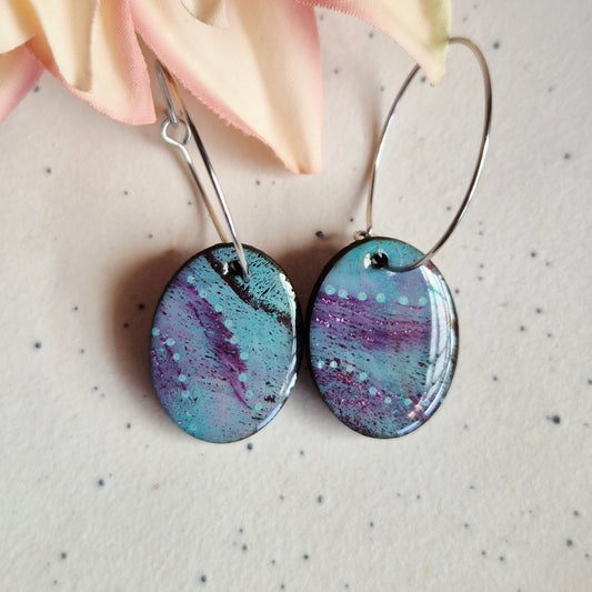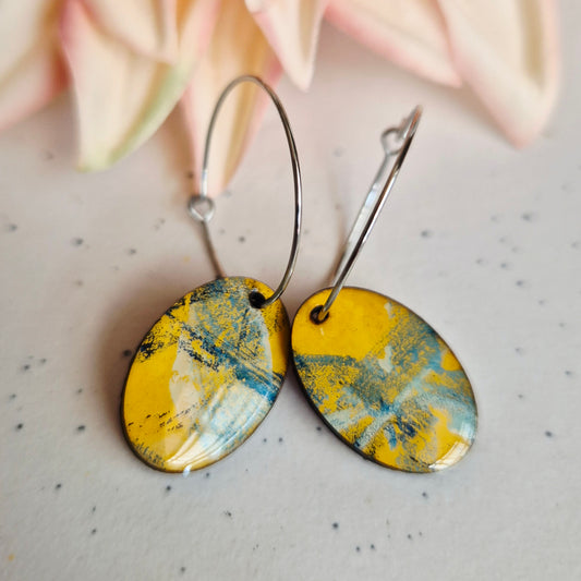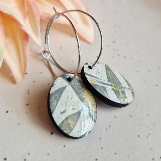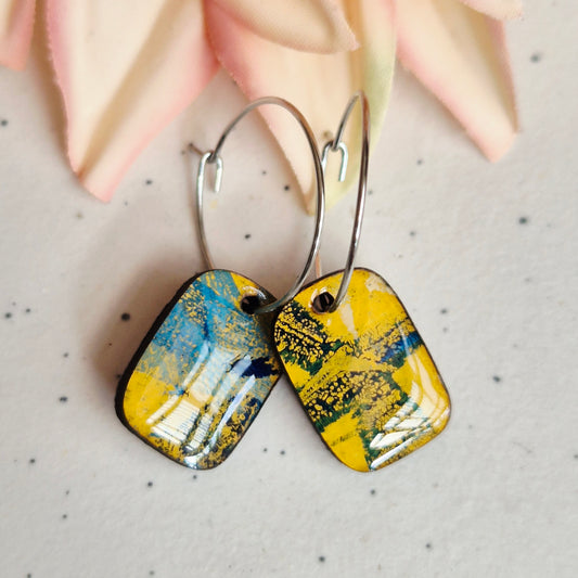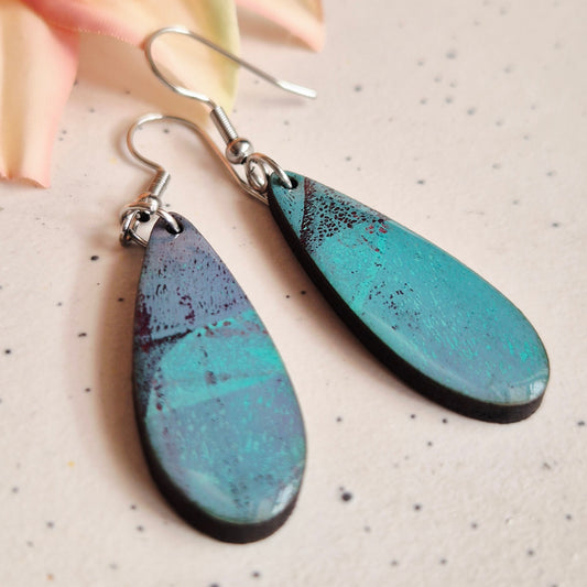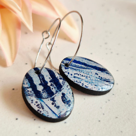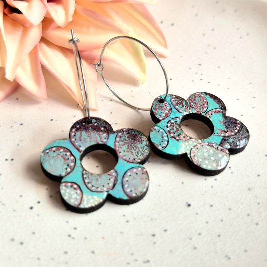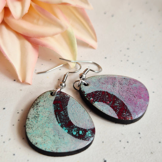 Created from my own original gel plate prints and transformed into gorgeous jewellery, these earrings and brooches are all one-of-a-kind and unique.