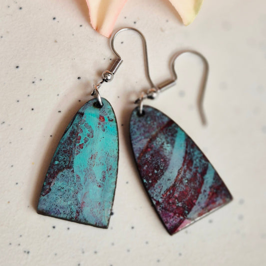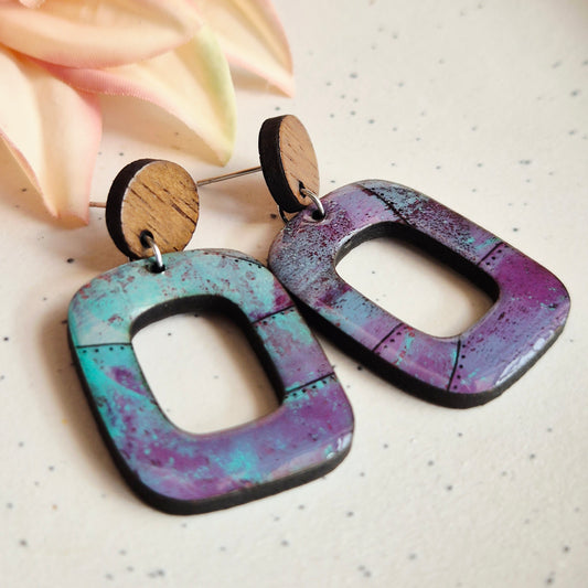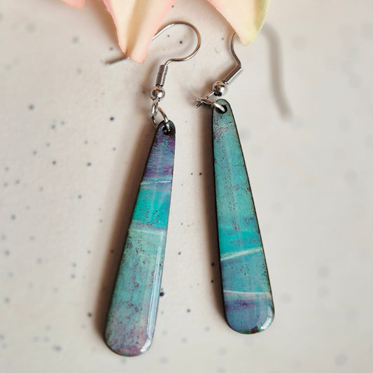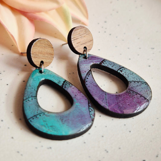 Gel Plate Teardrop Stud Drops (Purple and Turquoise)