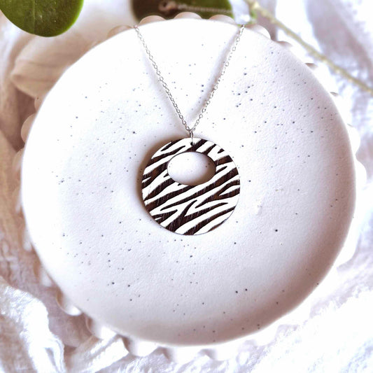 Round Zebra Pendant (chain optional)