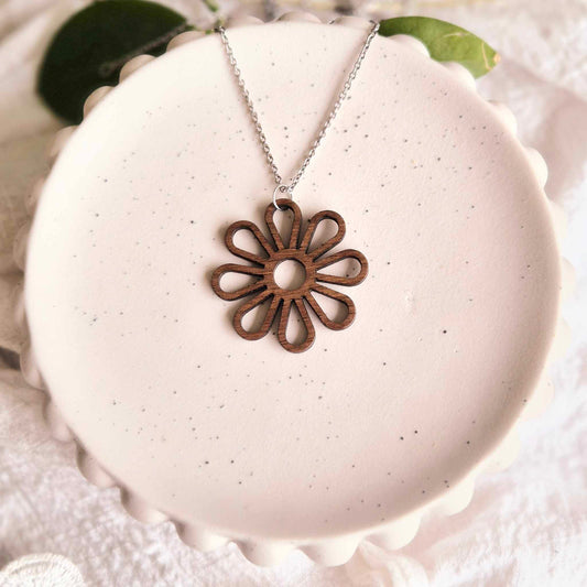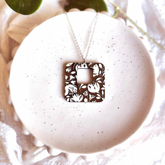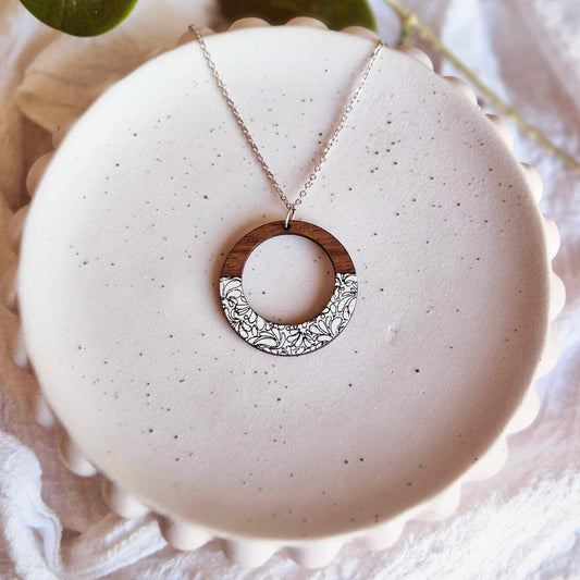 Blackwood and White Floral Pendant (chain optional)