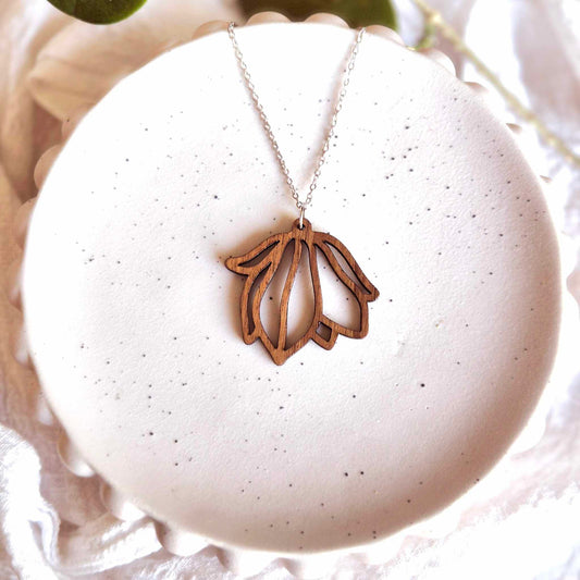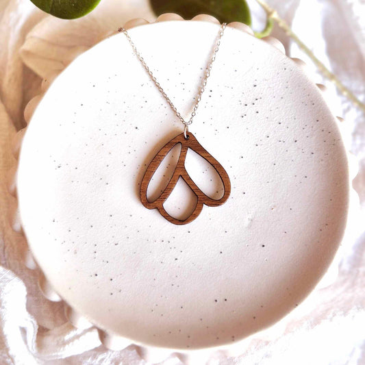 My pendant range is made from varnished or unvarnished plywood in Blackwood, Maple or Jarrah. They are very lightweight and coordinate with most outfits.