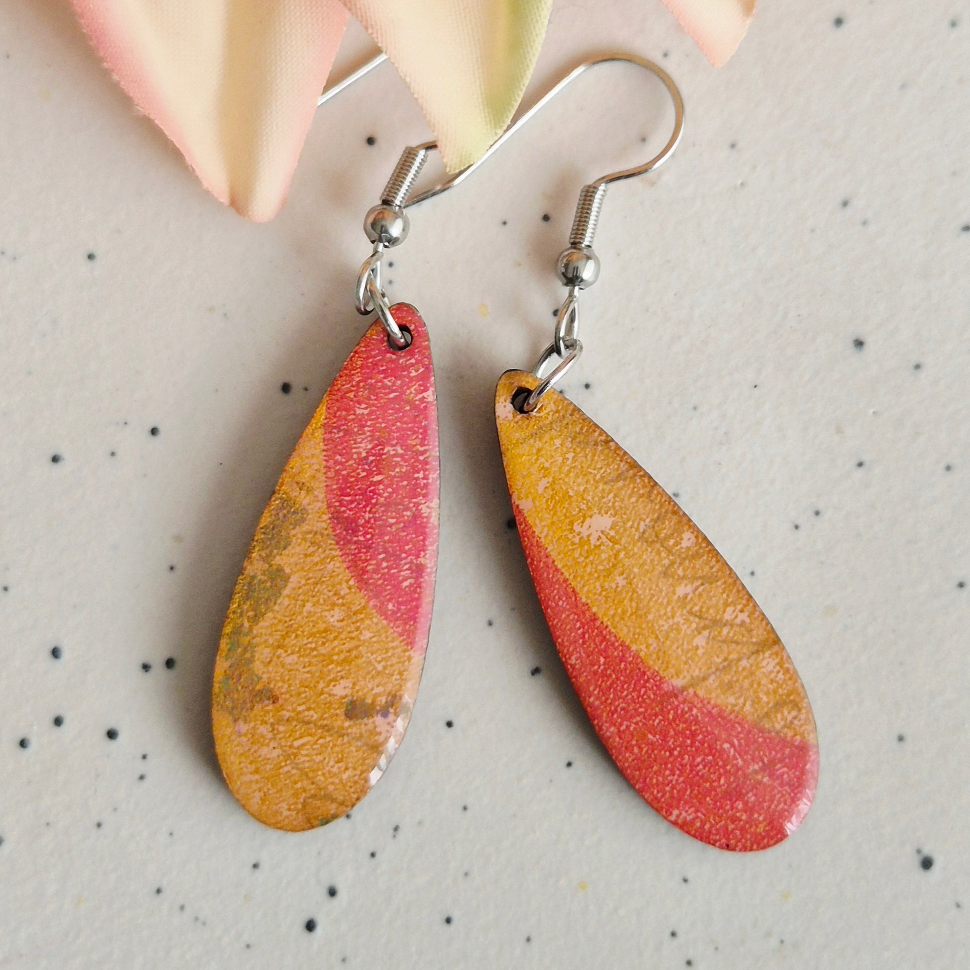 Created from my own original gel plate print and transformed into gorgeous drop earrings, these Gel Plate Droplets are one-of-a-kind and unique.