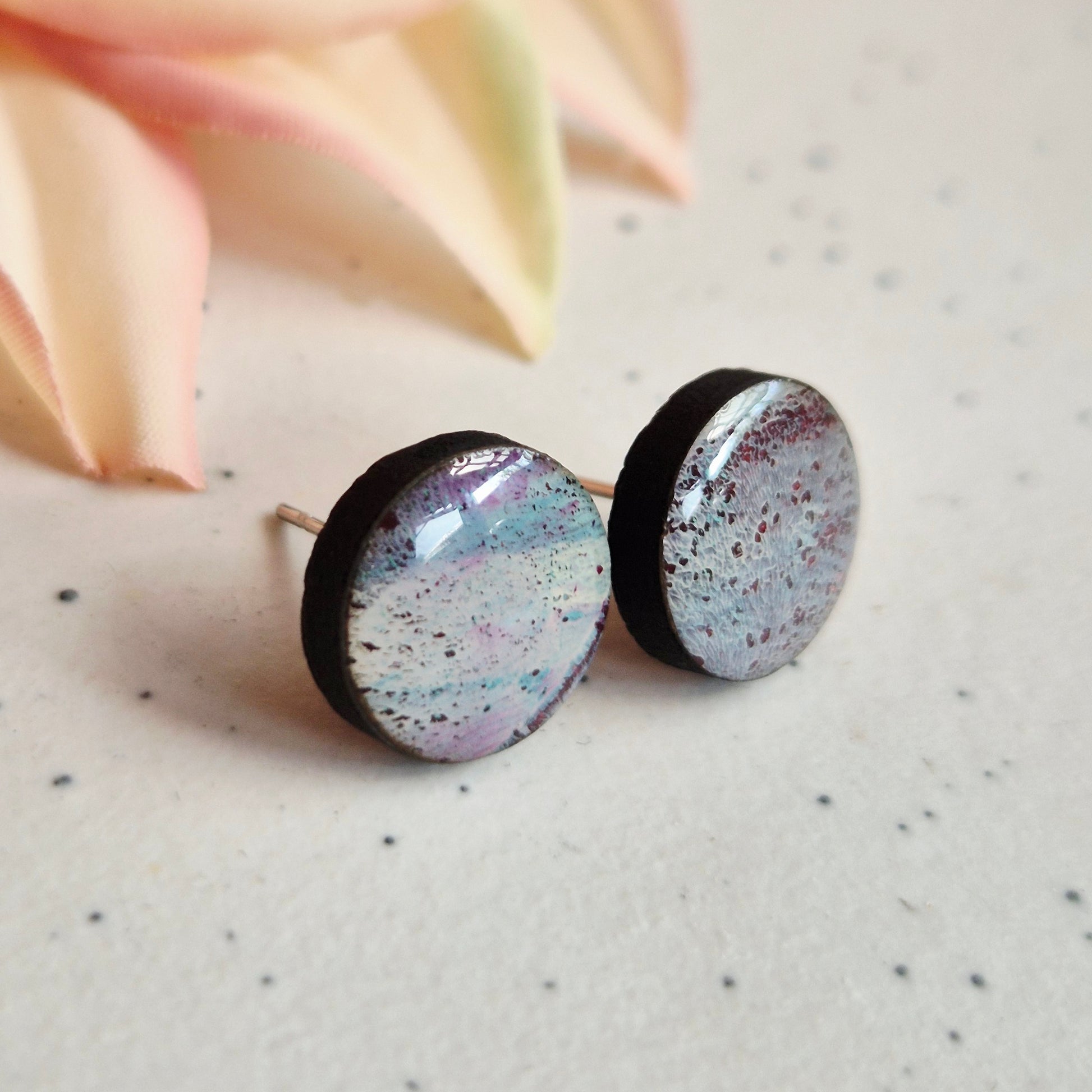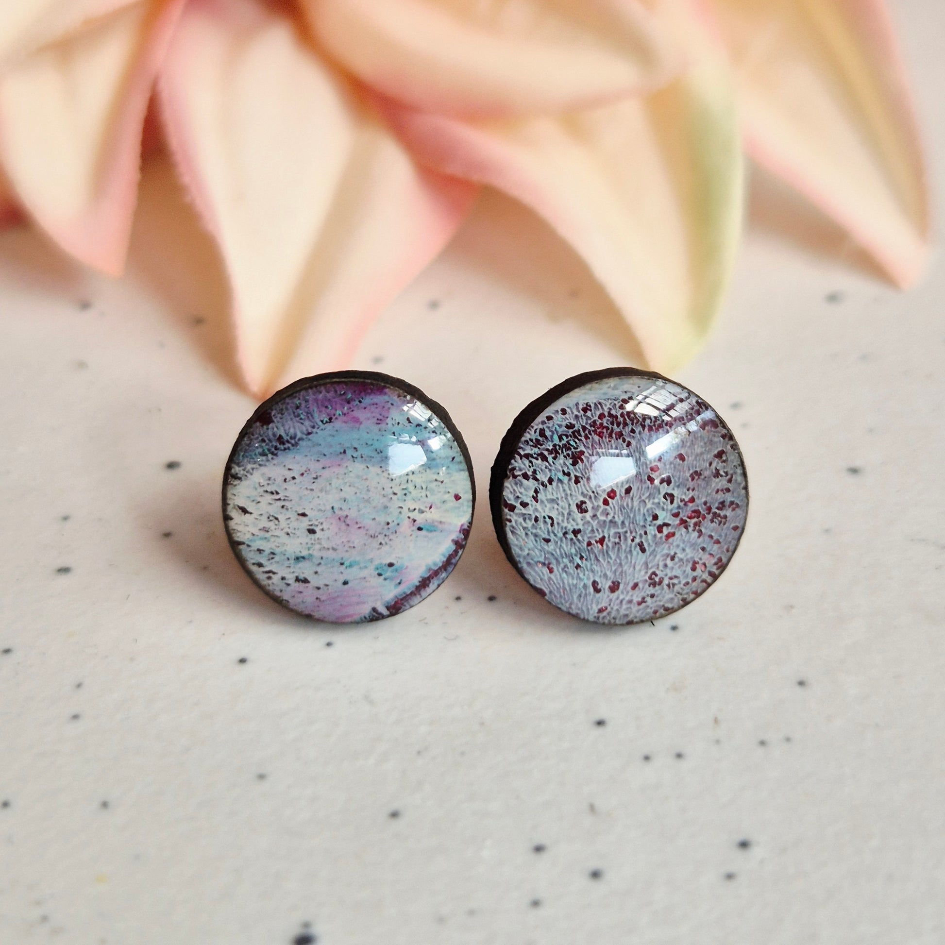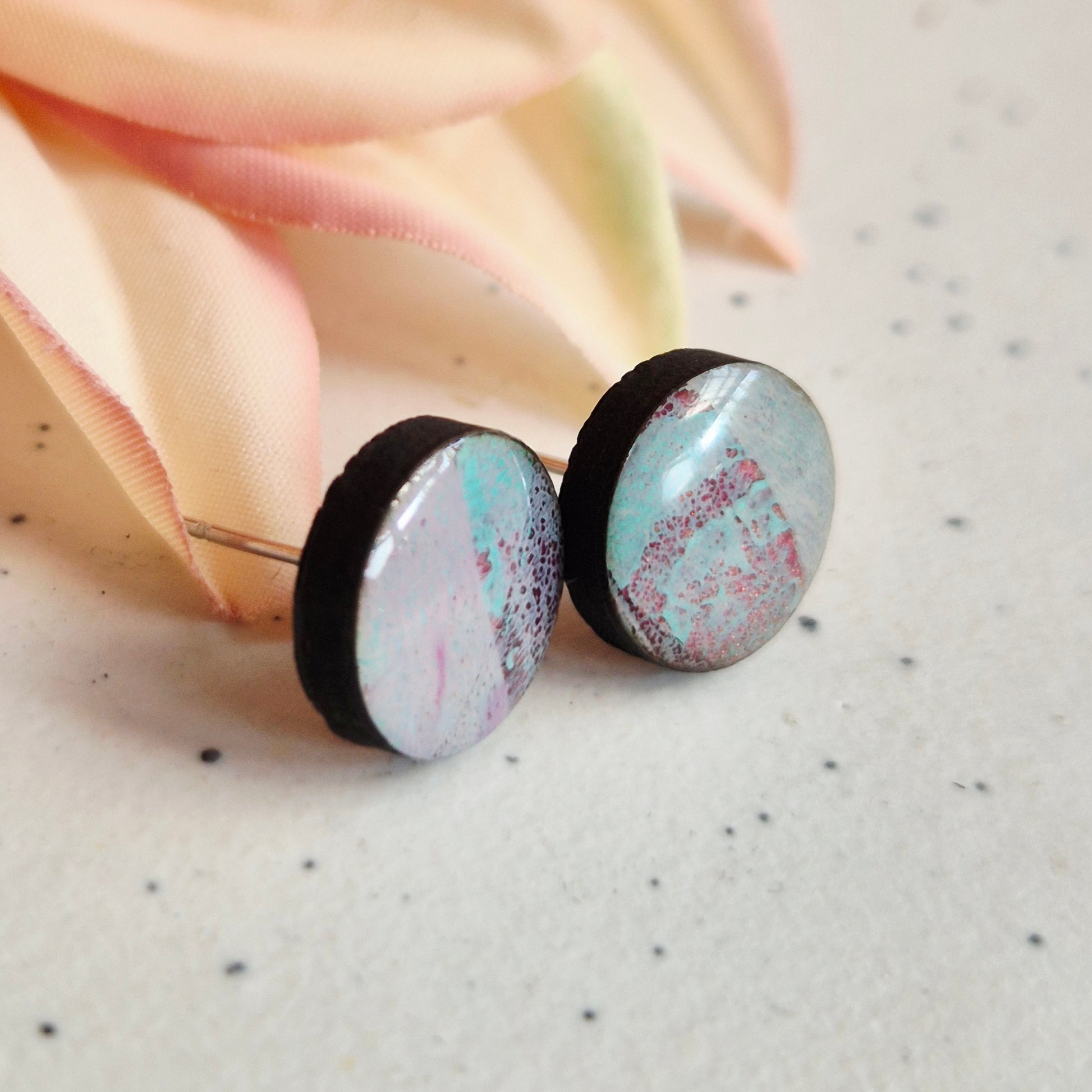 Created from my own original gel plate print (Turquoise and purple) and transformed into gorgeous studs, these Gel Plate Studs are all one-of-a-kind and unique.