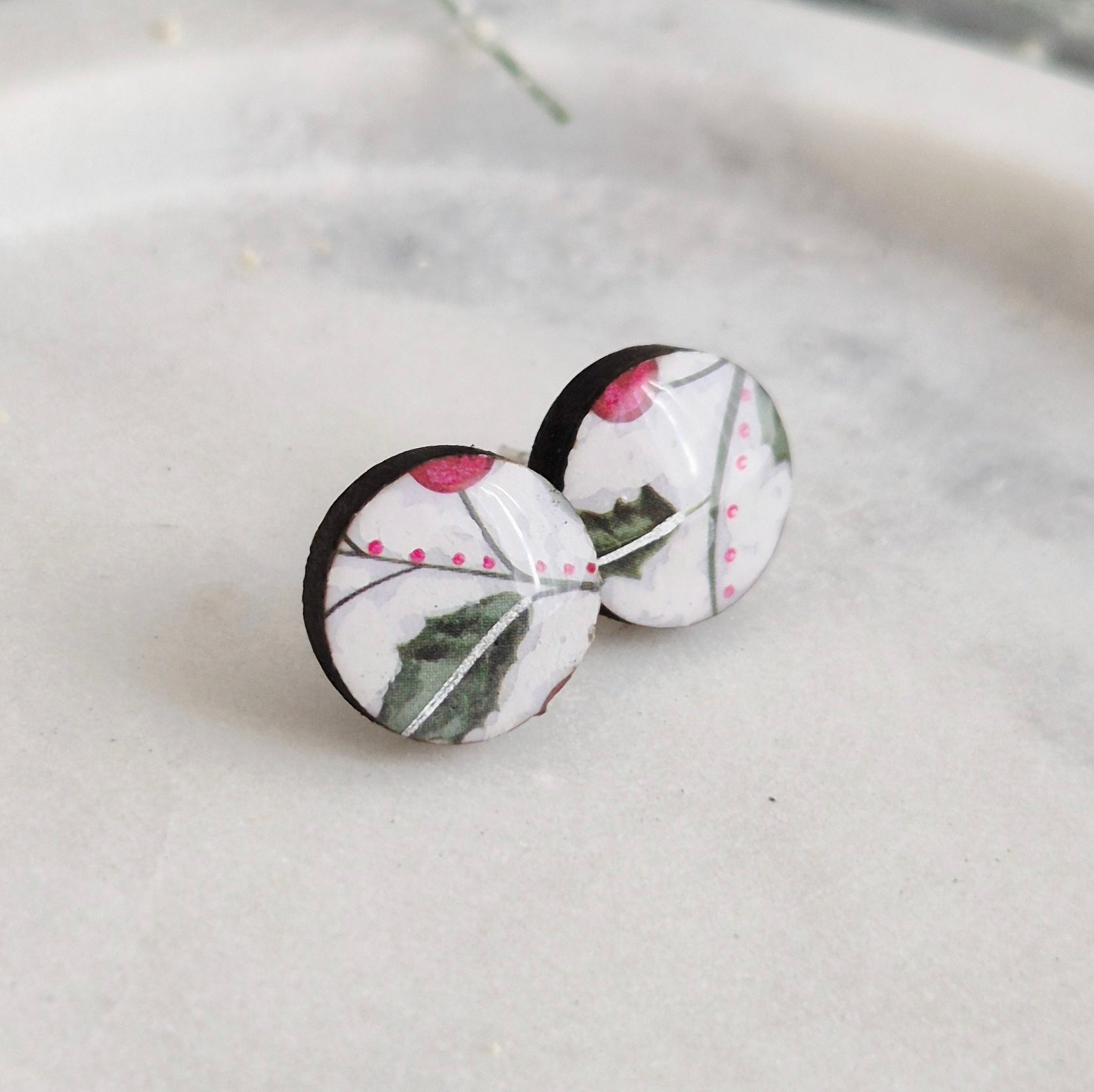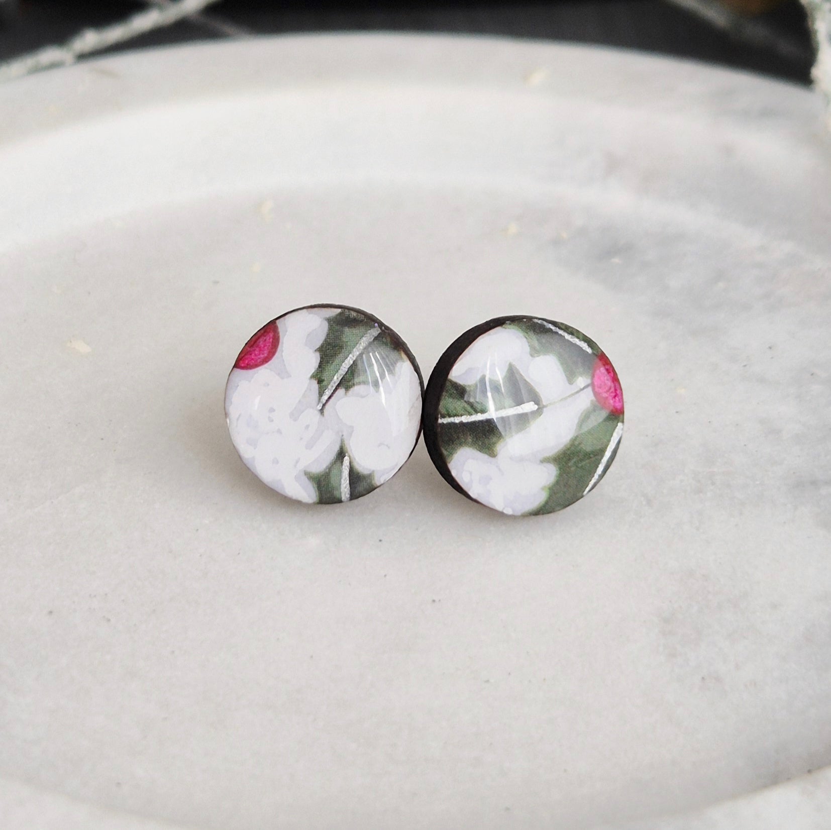 Add some Christmas cheer to your ears with these Holly Studs, at my special seasonal price!